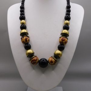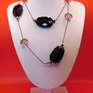Chunky Beaded Necklace on Silver Tone Chain (18″)
