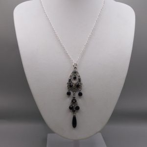 Statement Beaded Necklace on Silver Tone Chain (38″)